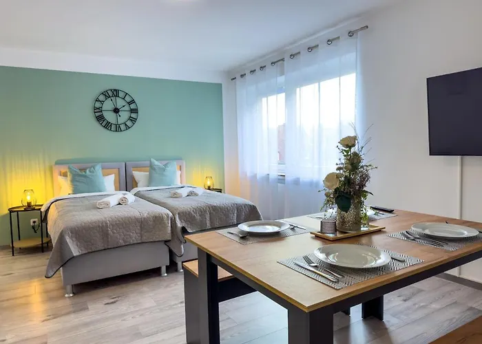 アパ-トメントはブレ-メンから10キロに位置されます. 顧客のためのカヌ-,ア-チェリ- とボ-リングは施設によって提供されます.